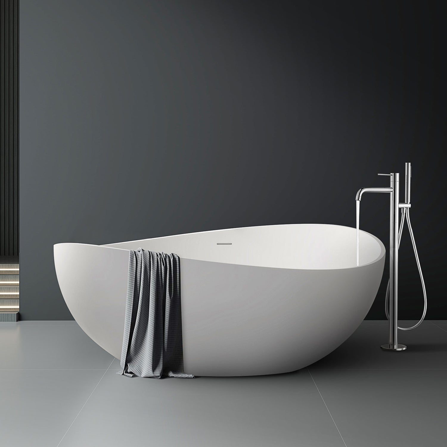 SJ-STARJANE 59'' Freestanding Tub Solid Surface Egg Shape Freestanding Soaking Tub