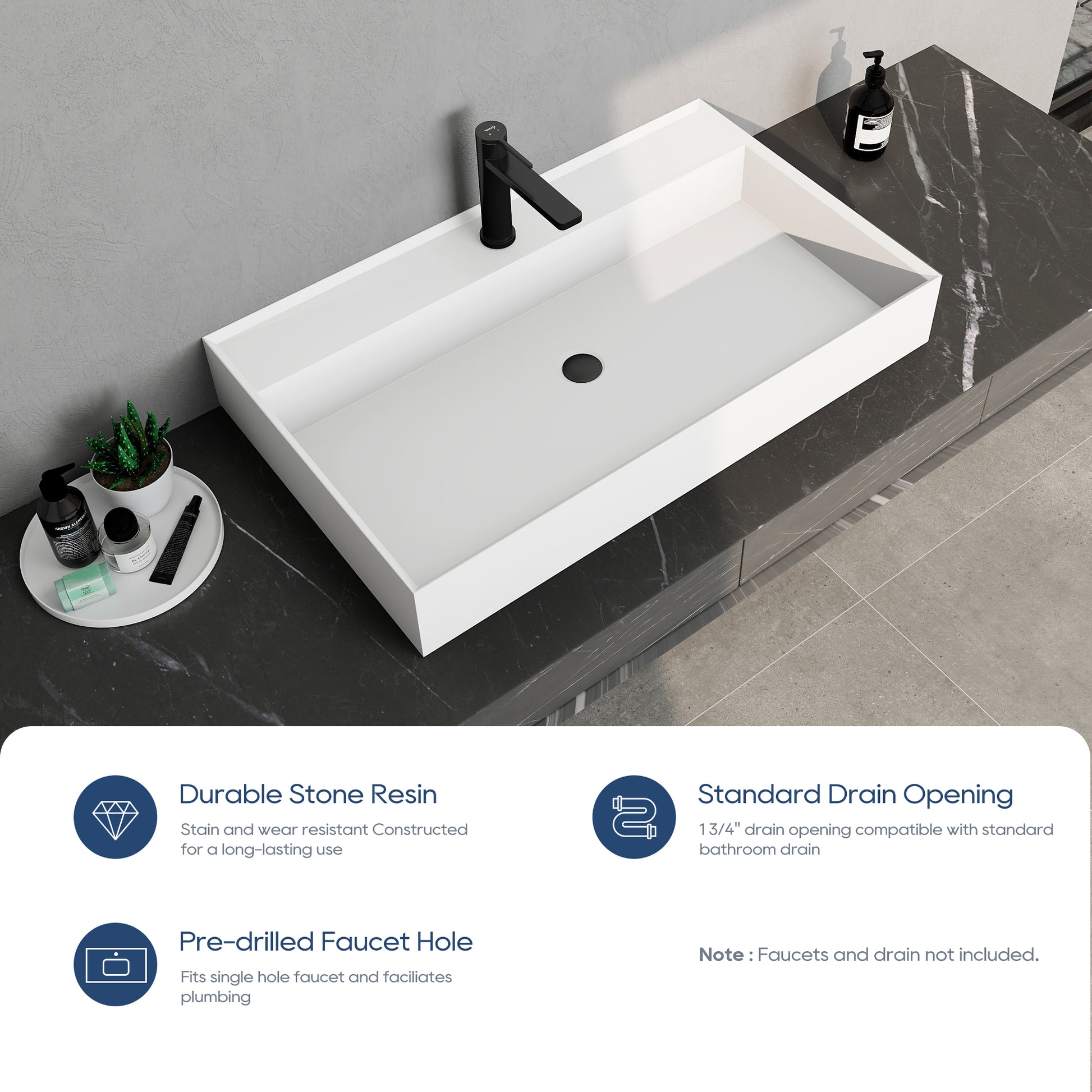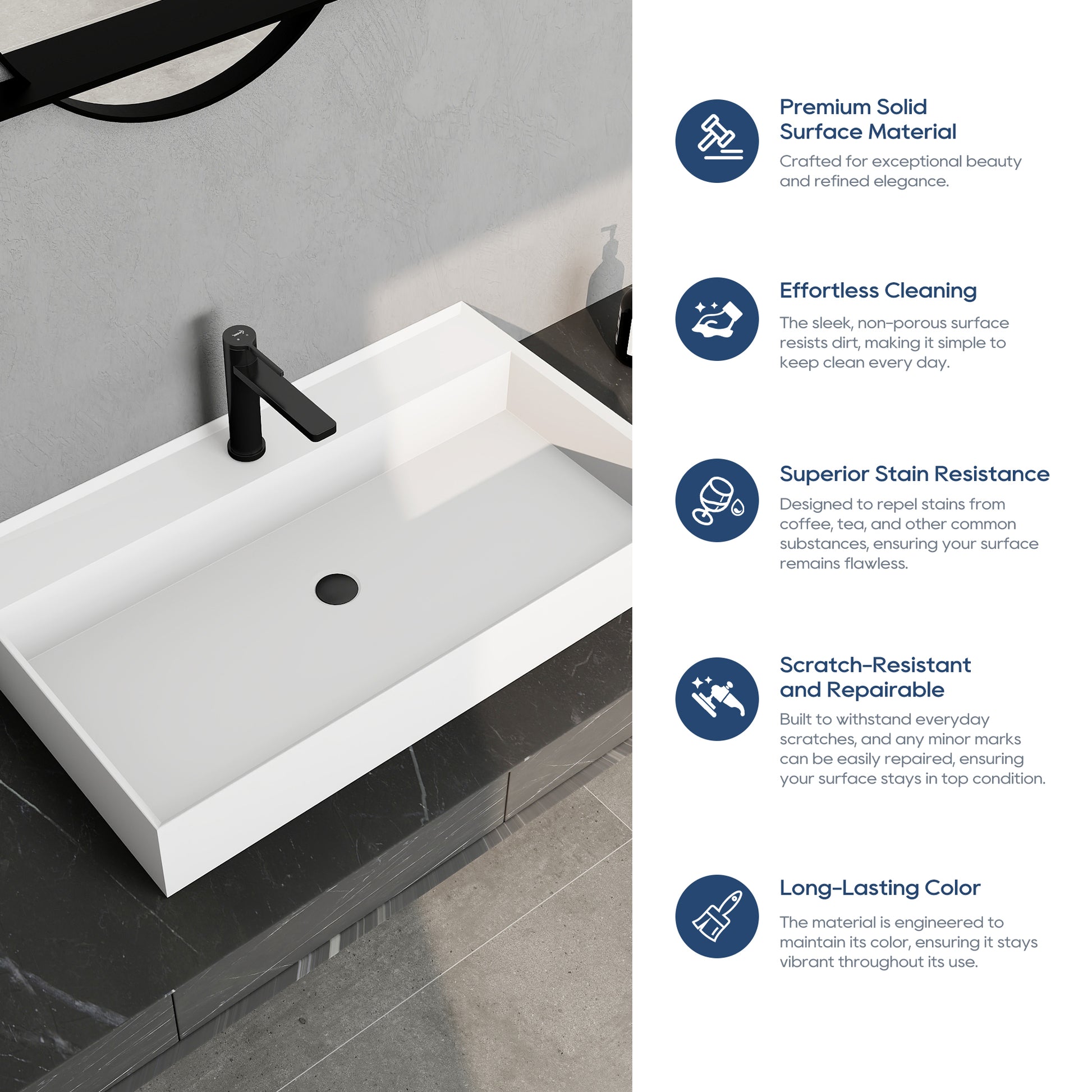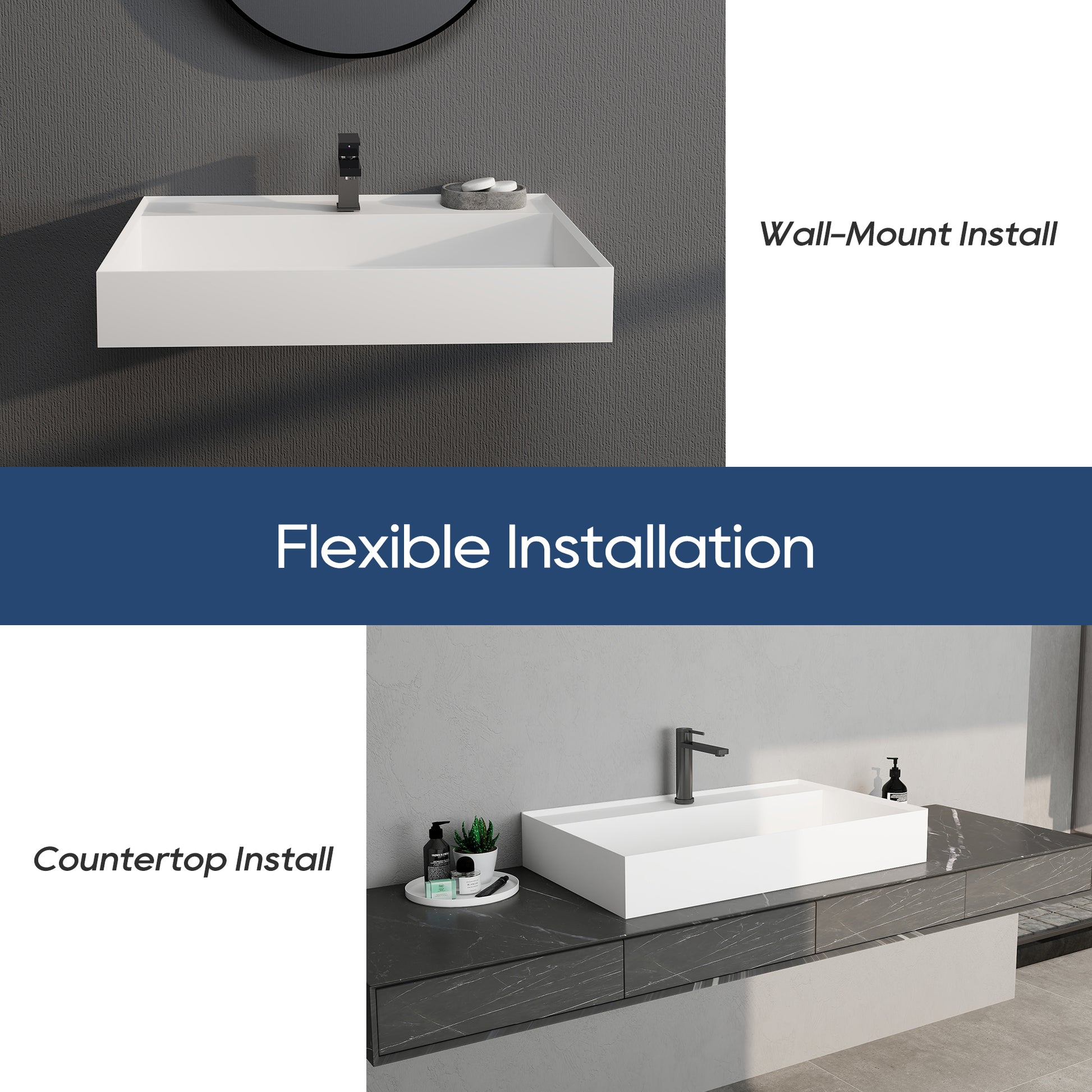 SJ-STARJANE 32''Wall Mount Bathroom Sinks Solid Surface Sinks Single Faucet Hole