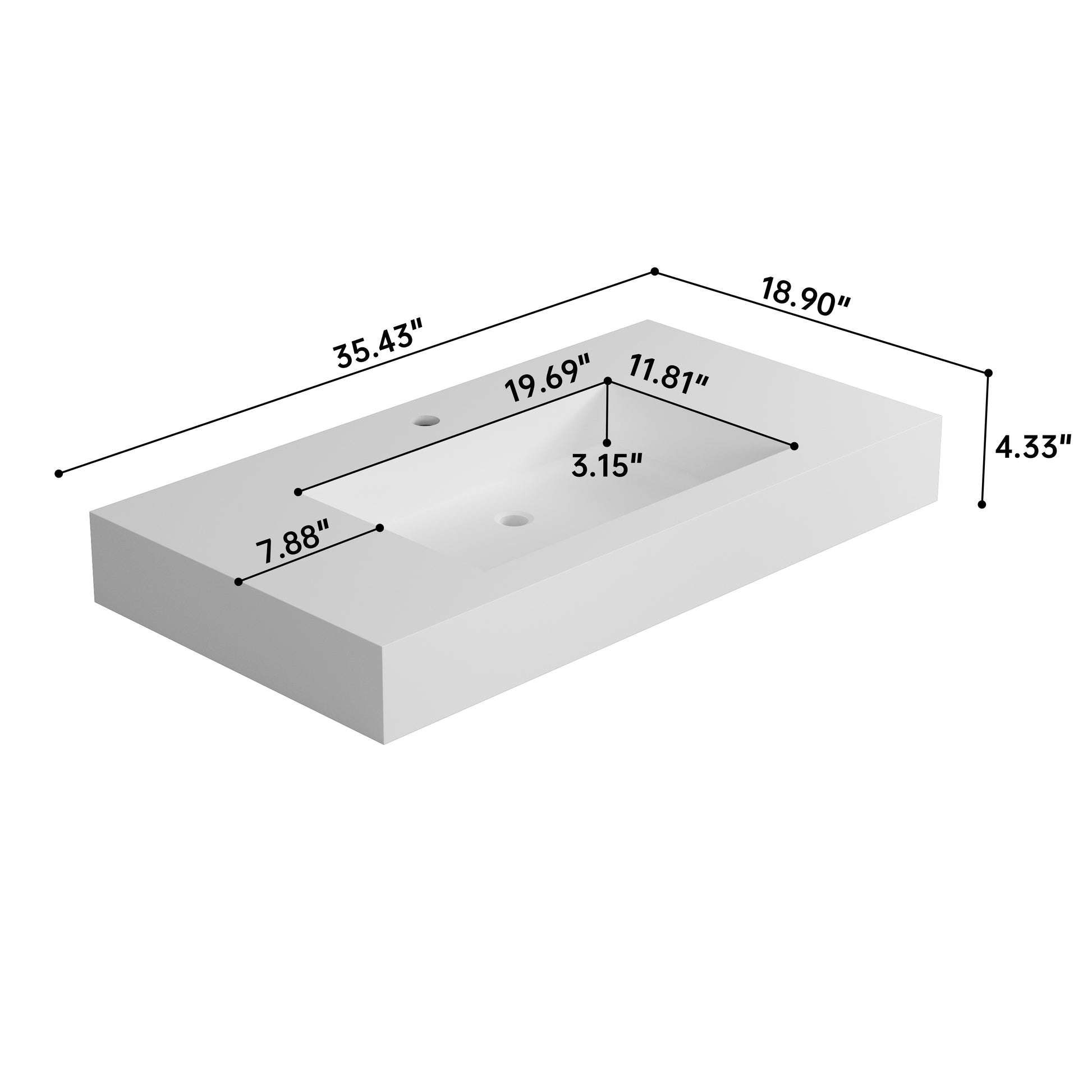 SJ-STARJANE 35''Solid Surface Wall Mount Bathroom Vessel Sink in Matte White
