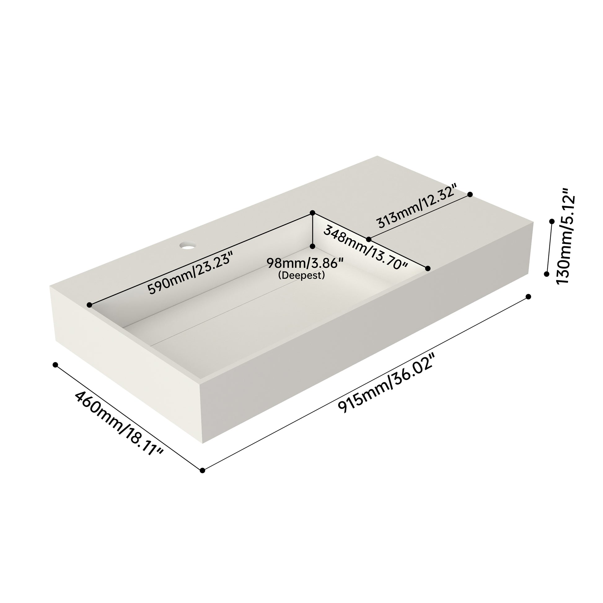 SJ-STARJANE 36''Solid Surface Wall Mount Bathroom Left Vessel Sink with Faucet Hole and Drain Cover