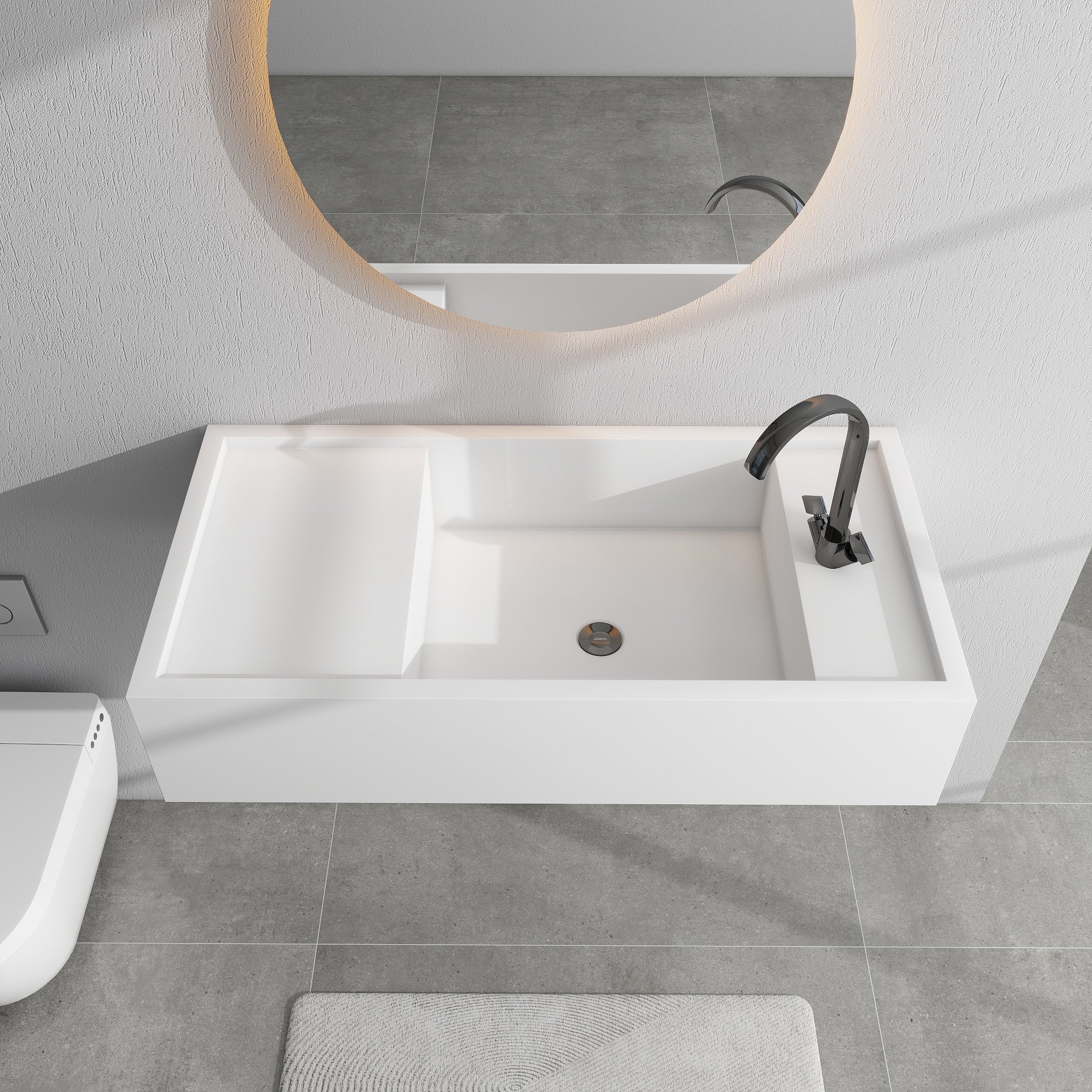 SJ-STARJANE 39''Solid Surface Wall Mount Bathroom Vessel Sink with Faucet Hole in Right