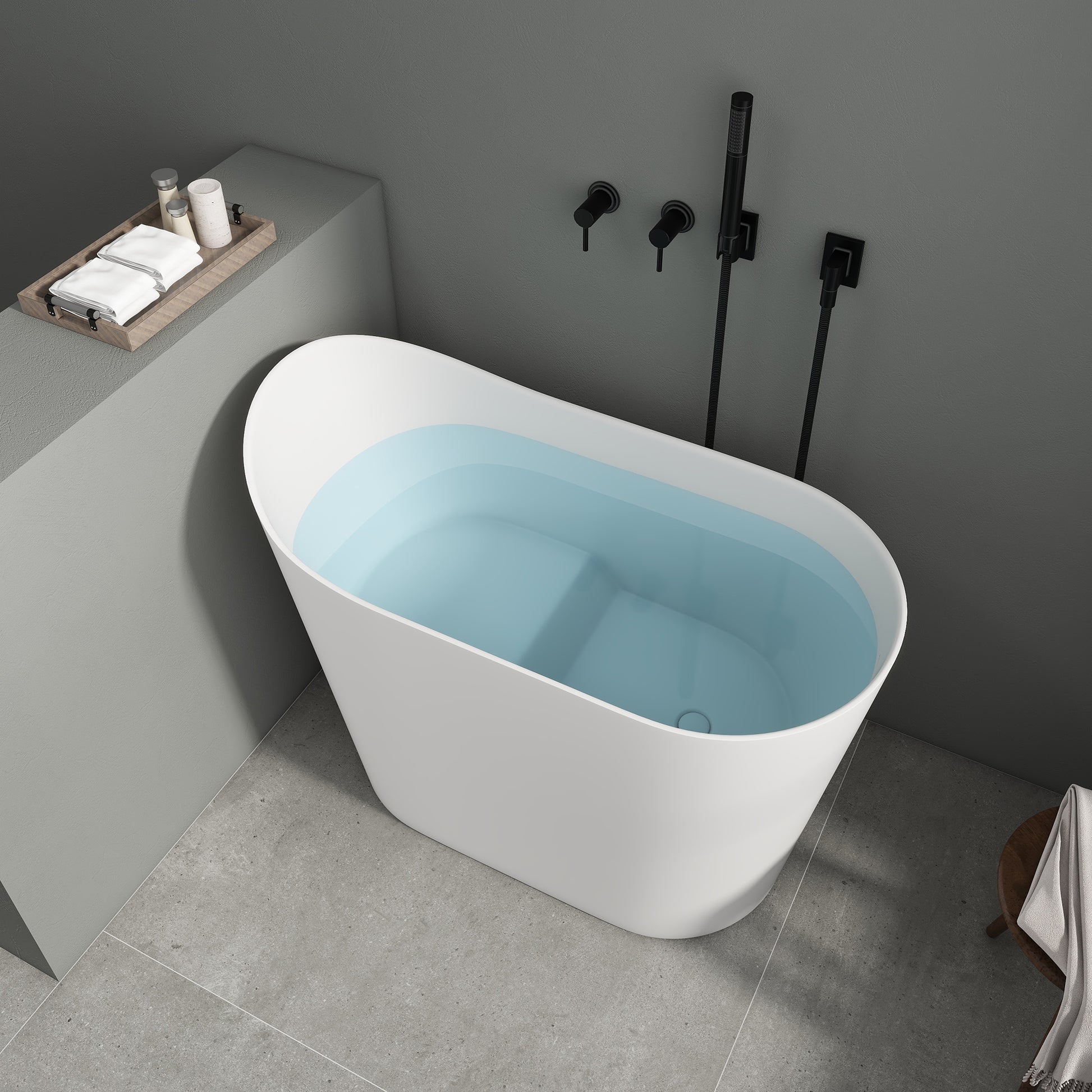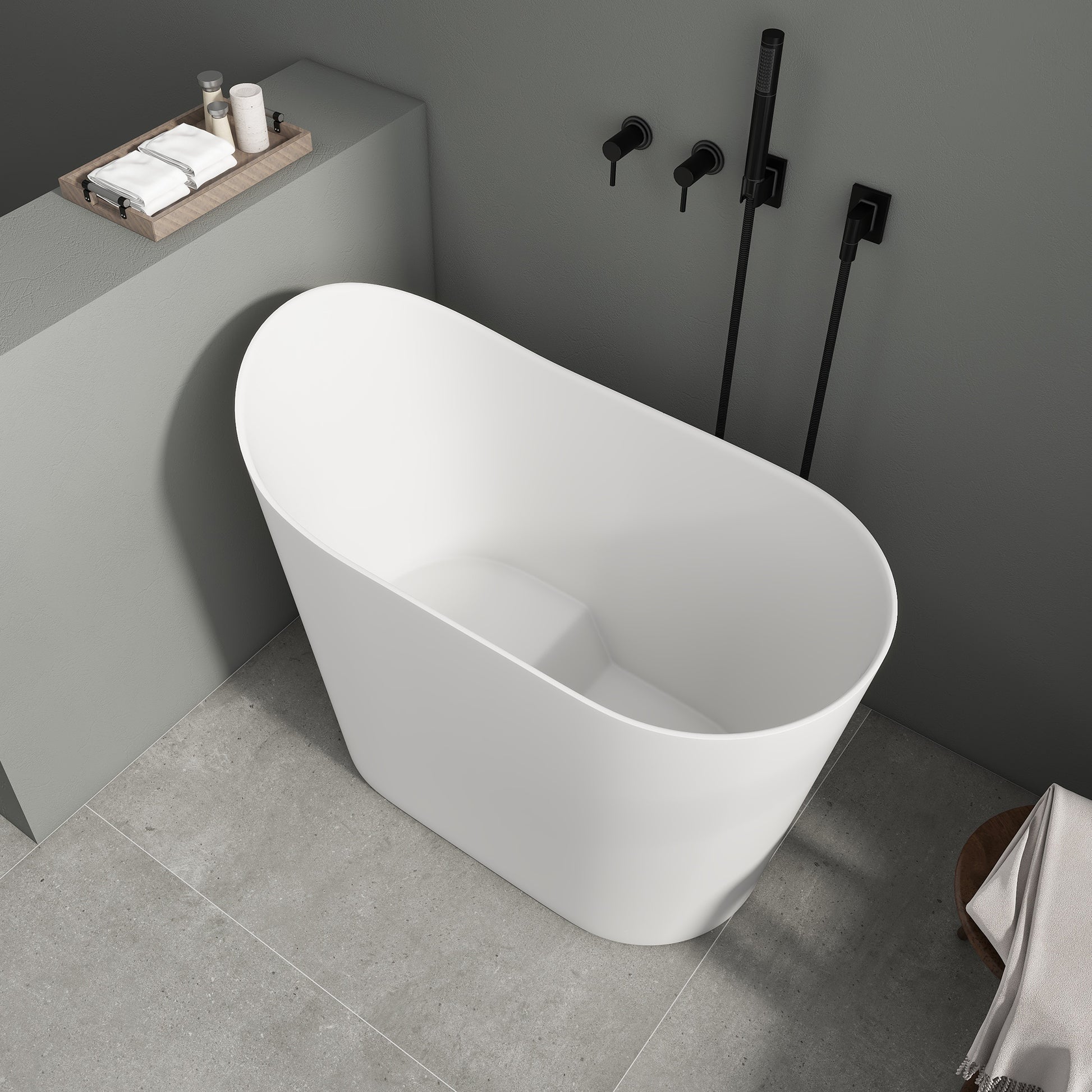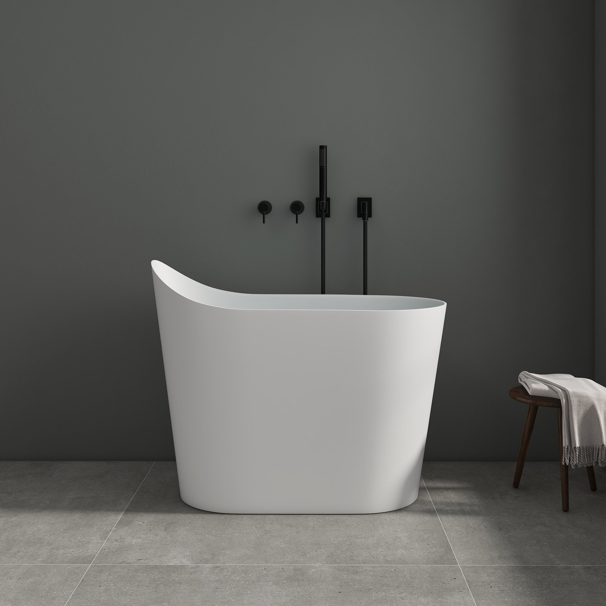 SJ-STARJANE 43''Artificial stone freestanding bathtub with seat (matte white)