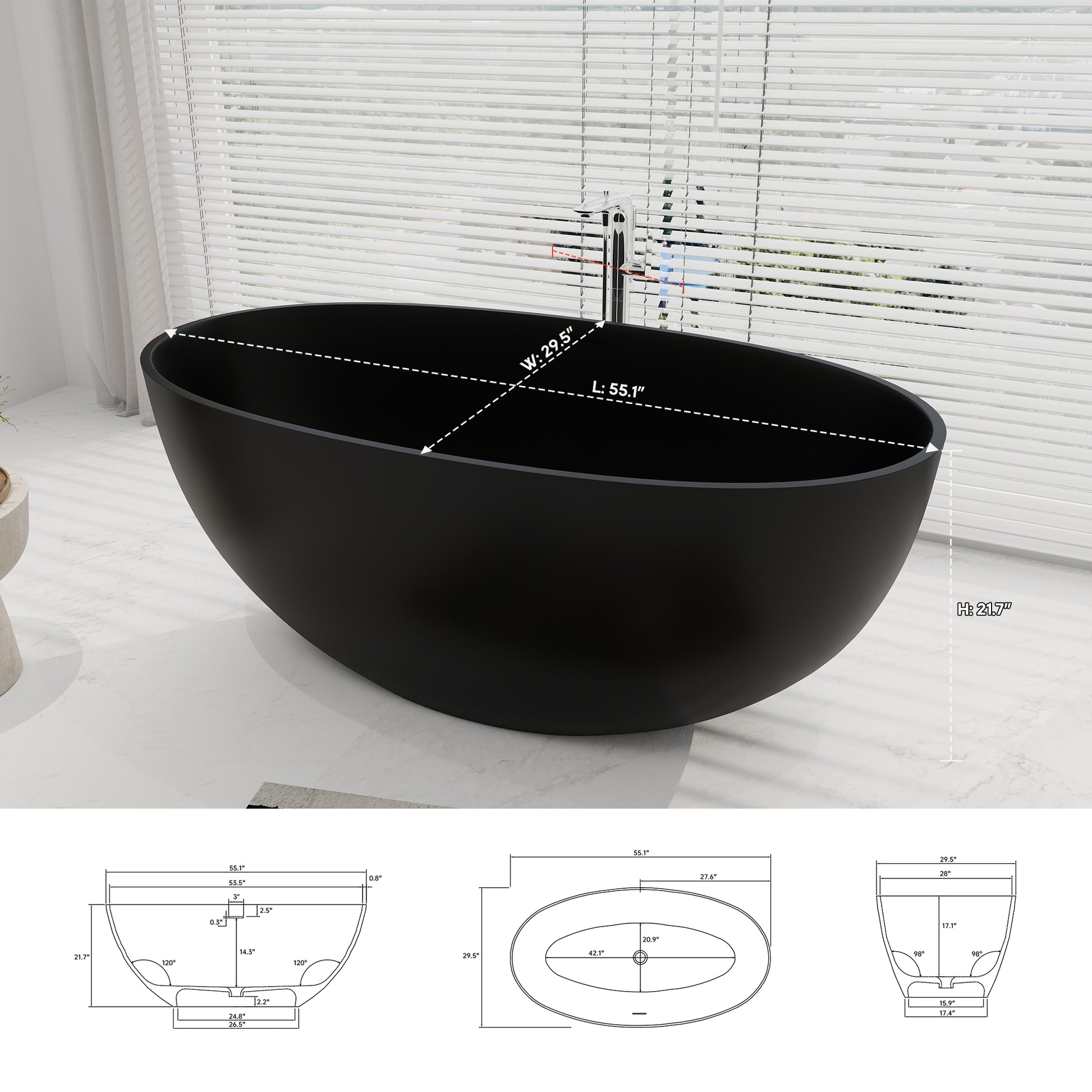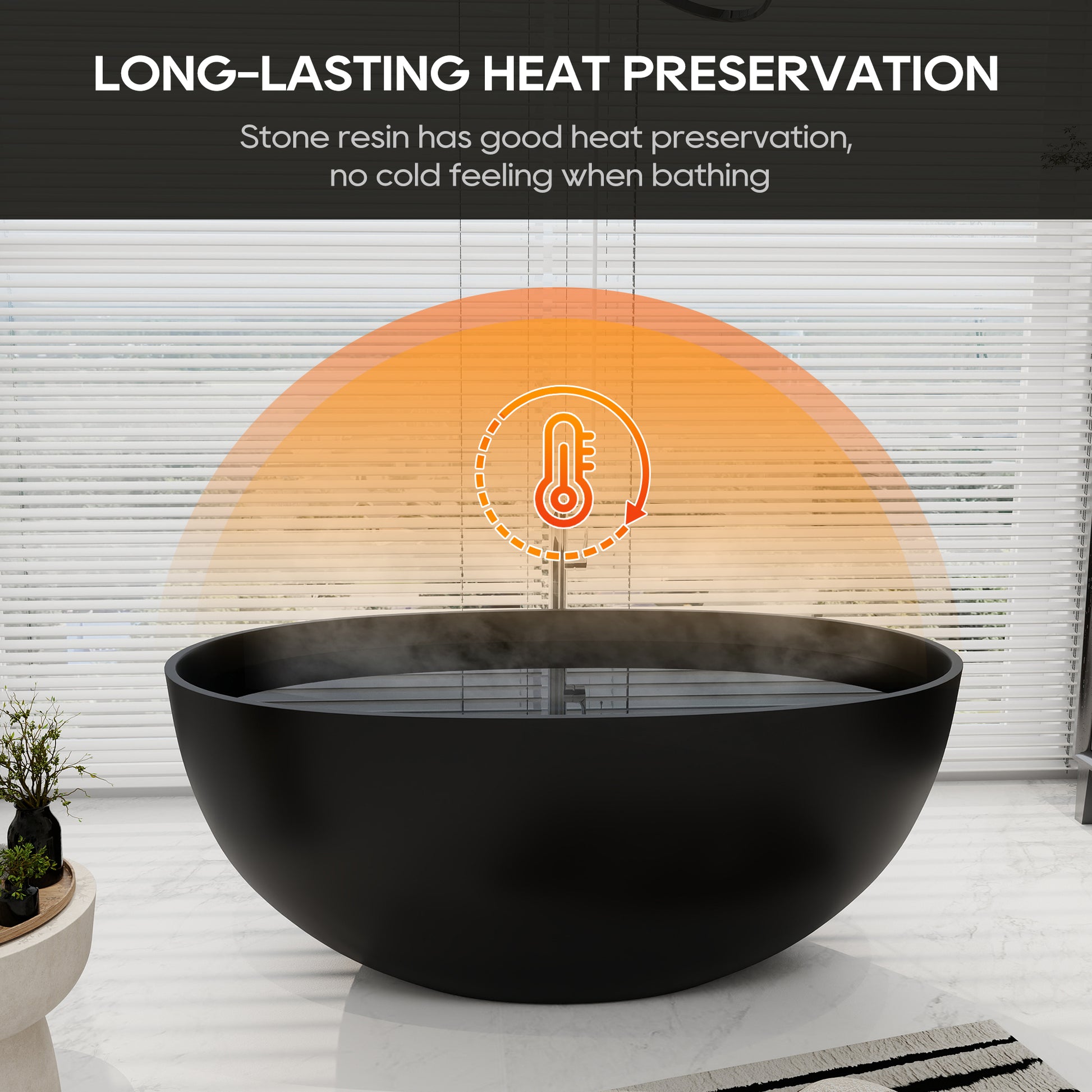 Made of 100% environmentally friendly resin stone, it combines the texture of natural stone with excellent performance. Non-porous and stain-resistant design, with special repairable material that allows minor scratches to be easily recovered, and non-slip matte surface that is silky smooth to the touch. Ergonomic curve design, tilted lumbar support provides perfect support for head, neck and lumbar spine, and long-lasting heat preservation makes the warmth lasting companion. Lightweight white material is scratch-resistant and wear-resistant, suitable for both indoor and outdoor use, and the corner-proof design is suitable for a variety of spaces. Includes a pop-up drain with bottom spout in the center and a drain hose (price extra), combining practicality and aesthetics.