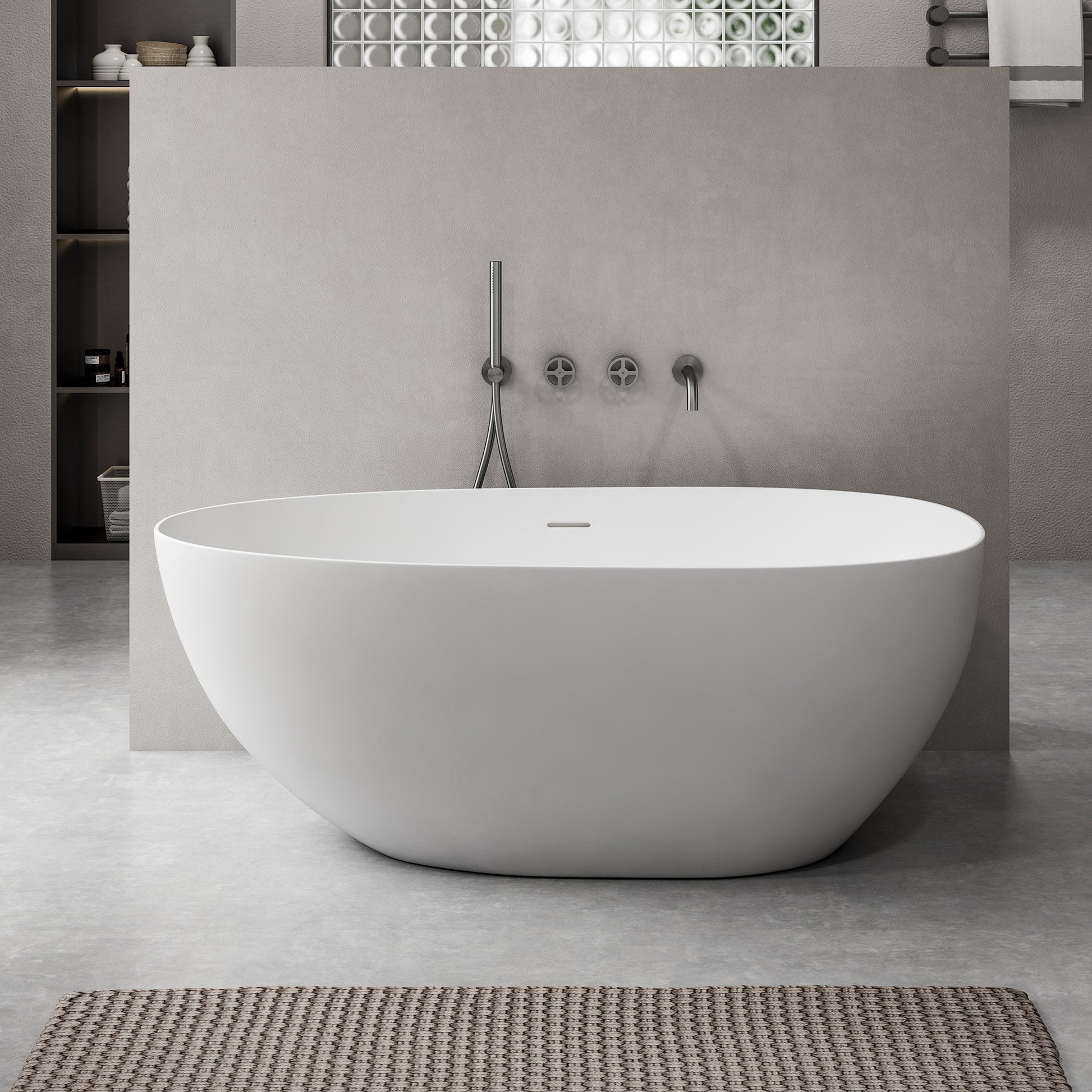 SJ-STARJANE 59'' Freestanding Tub Solid Surface Egg Shape Freestanding Soaking Tub