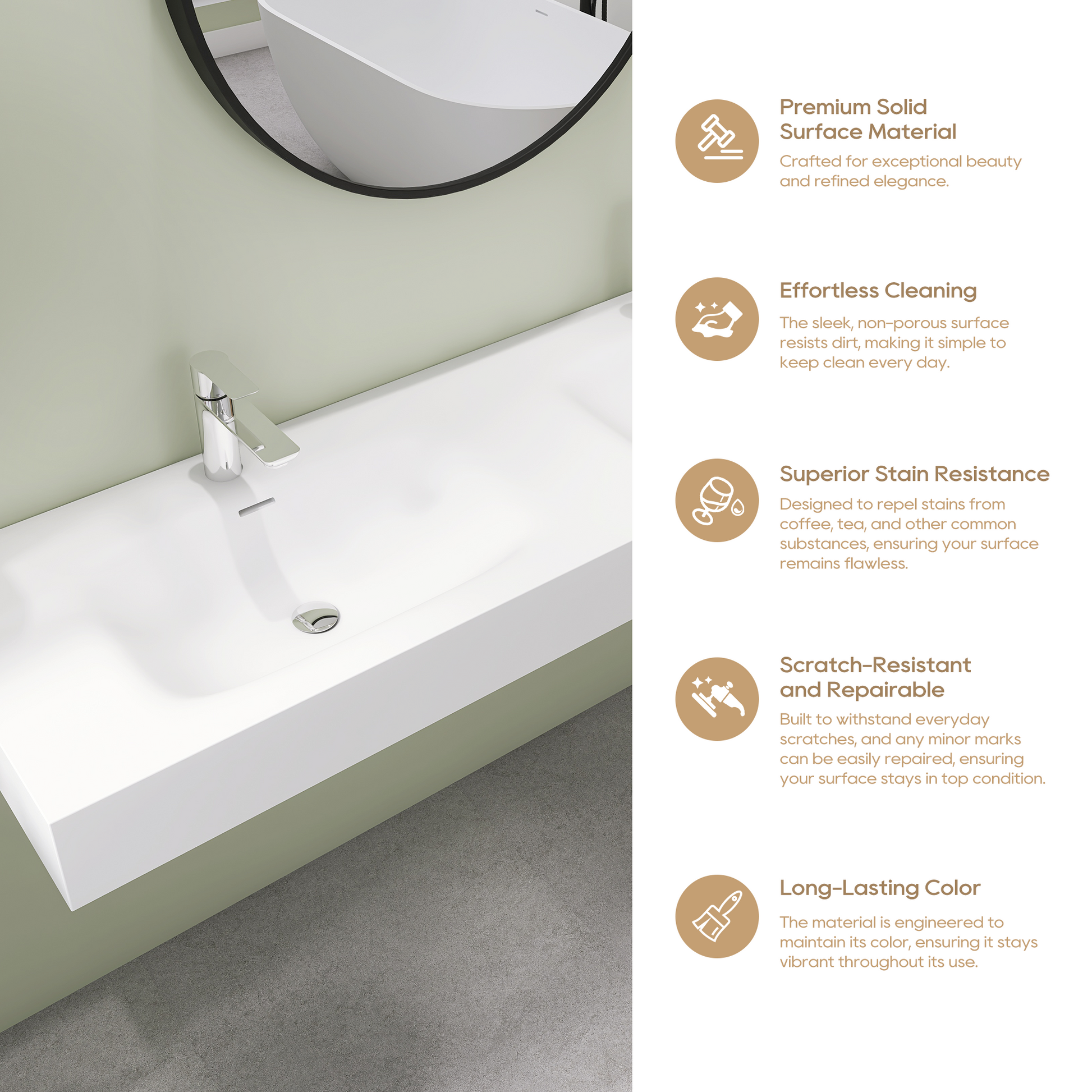 - High-quality solid surface, non-porous and impermeable material, stain-resistant and wear-resistant, easy and convenient for daily cleaning.