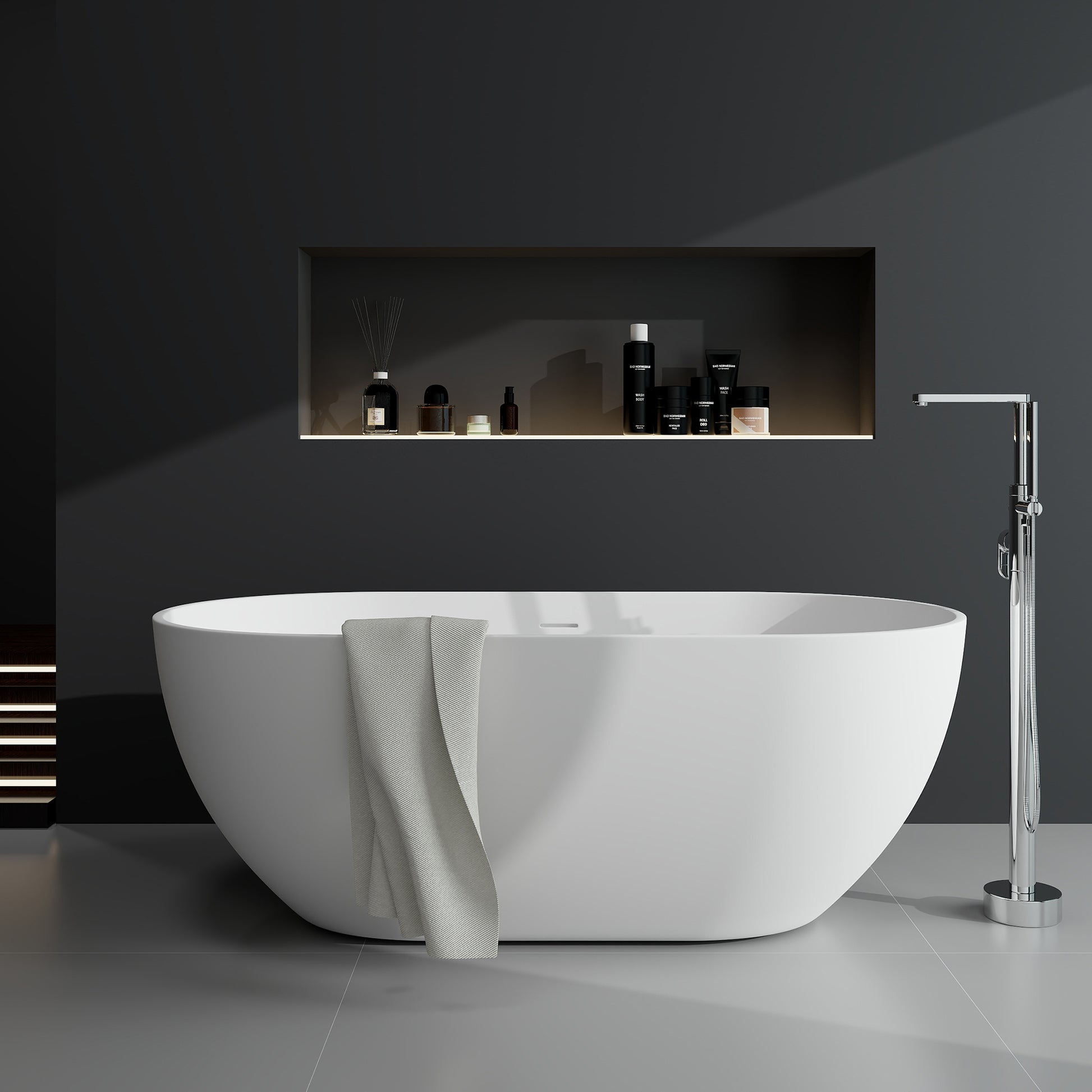 Crafted from high quality stone resin for durability and elegance, this bathtub is the finishing touch to your bathroom. The sturdy surface construction ensures that the tub is durable and elegant. The matte finish adds a modern touch to your space and enhances its appeal. Perfect for small spaces, this 59-inch bathtub combines practical functionality with sleek style. With its special repairable feature, you don't have to worry about minor scratches, damage, or stubborn stains. Our ergonomically curved tub features a sloped backrest and smooth edges that mold to your body's curves for a long soak without fatigue. The surface is finely polished for a warm, delicate touch and is non-slip, stain and heat resistant, making everyday cleaning easy and durable. Whether you're looking to create a stylish upgrade or enjoy a comfortable soaking experience, our stone resin freestanding bathtub is the perfect choice. Includes pop-up drain, but requires a separate drain hose (priced separately).