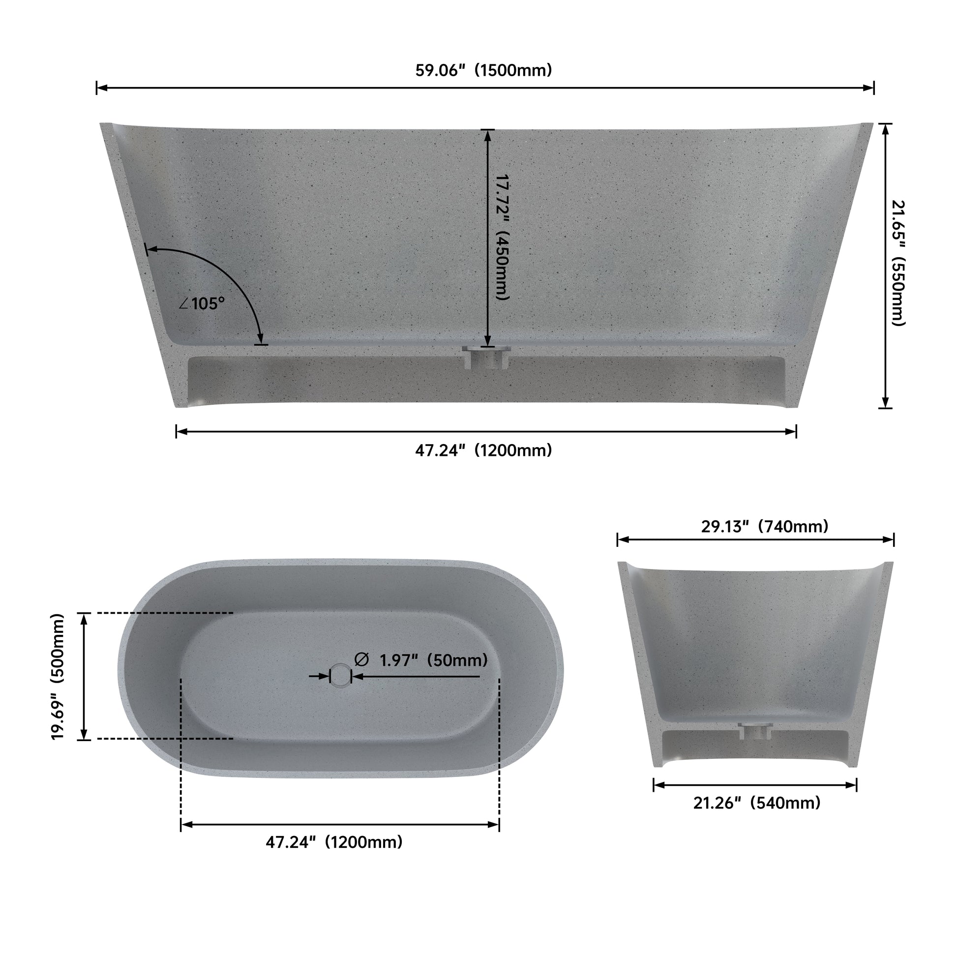 SJ-STARJANE 59''Freestanding soaking terrazzo bathtub