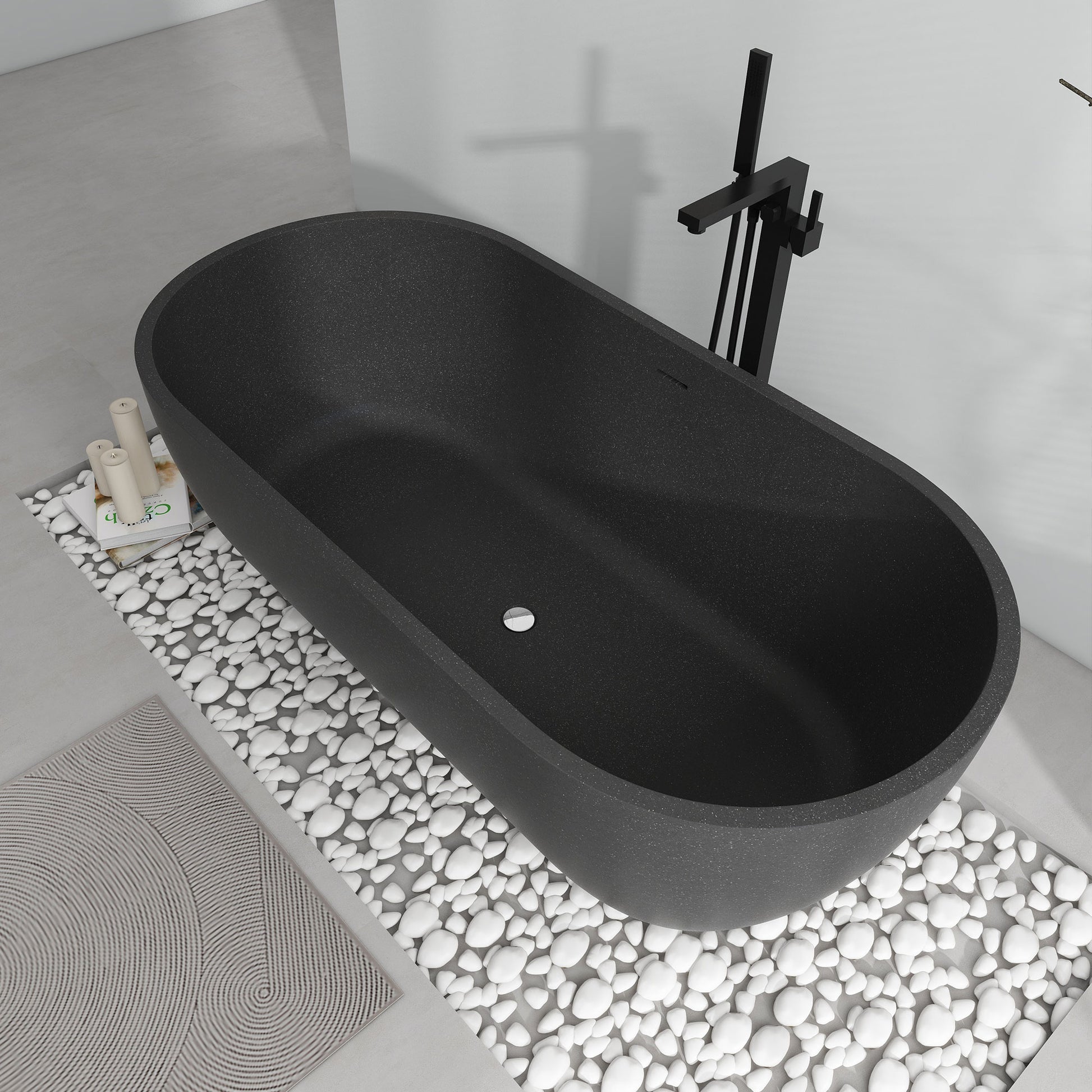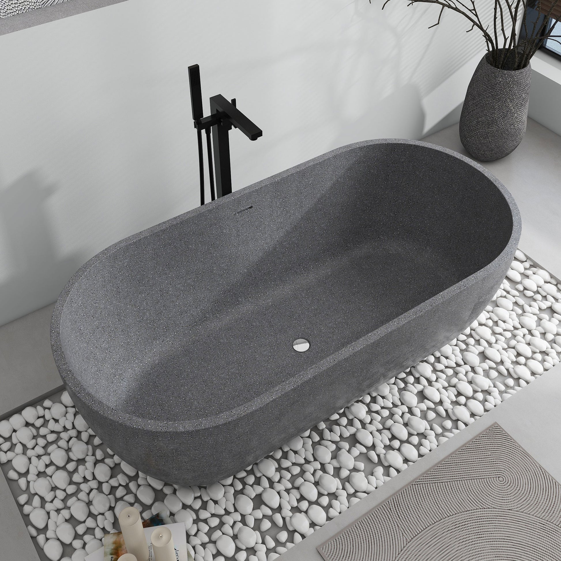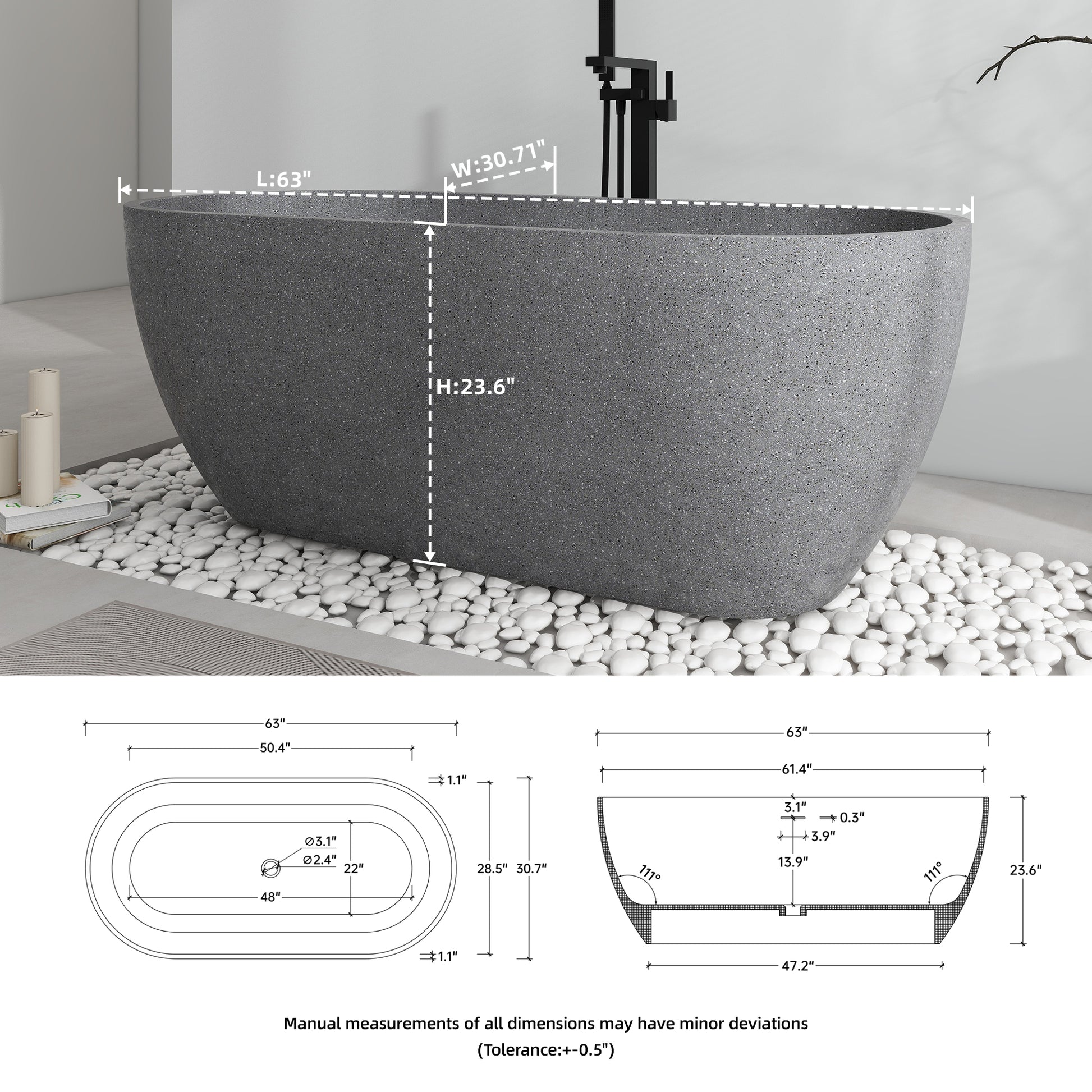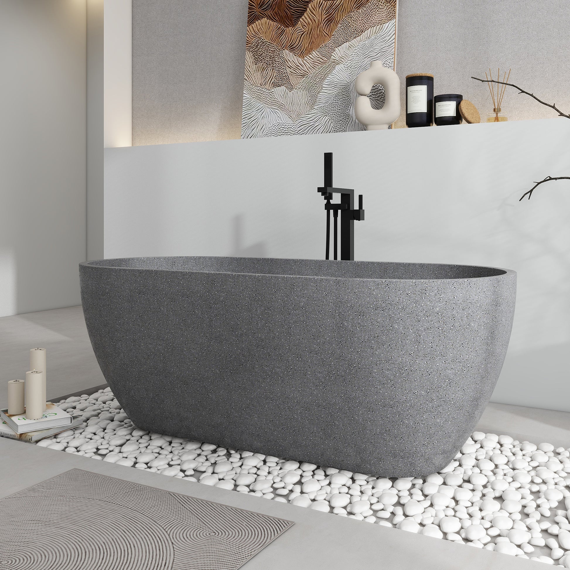 SJ-STARJANE 63'' x 31'' Concrete Freestanding Solid Surface Soaking Stone Bathtub Terrazzo