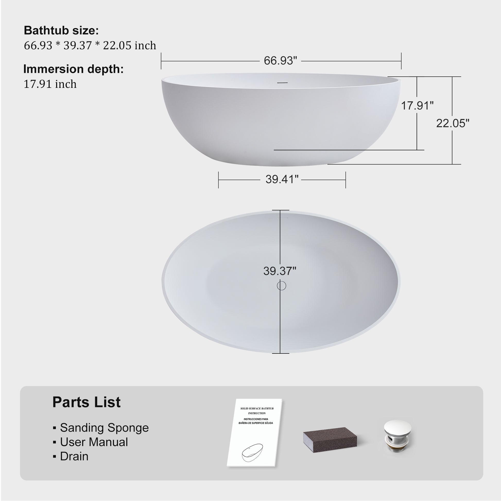 SJ-STARJANE 67'' Stone Resin Solid Surface Matte Flatbottom Freestanding Bathtub