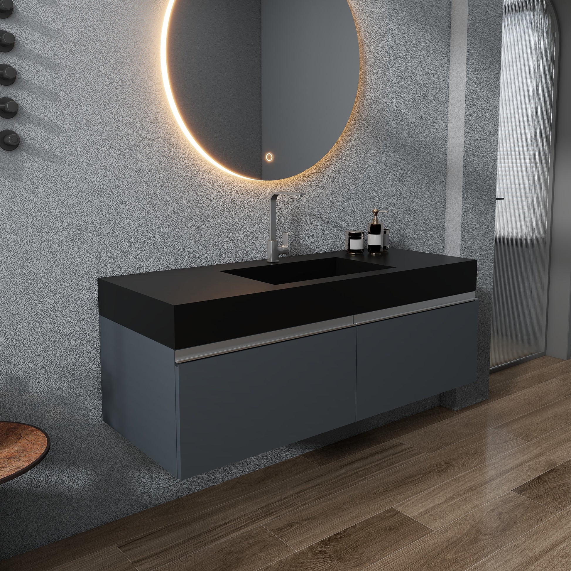 The use of high-quality artificial stone to create, wear-resistant and stain-resistant, daily wipe that is clean, stubborn stains with sandpaper can be gently grinding new. Matte black texture with smooth lines, low-key senior, suitable for all types of bathroom style, enhance the style of space. Wall-mounted design saves space, no hygienic dead ends, cleaning is more worrying. It is ideal for washroom, bathroom or dressing room, combining value and practicality.